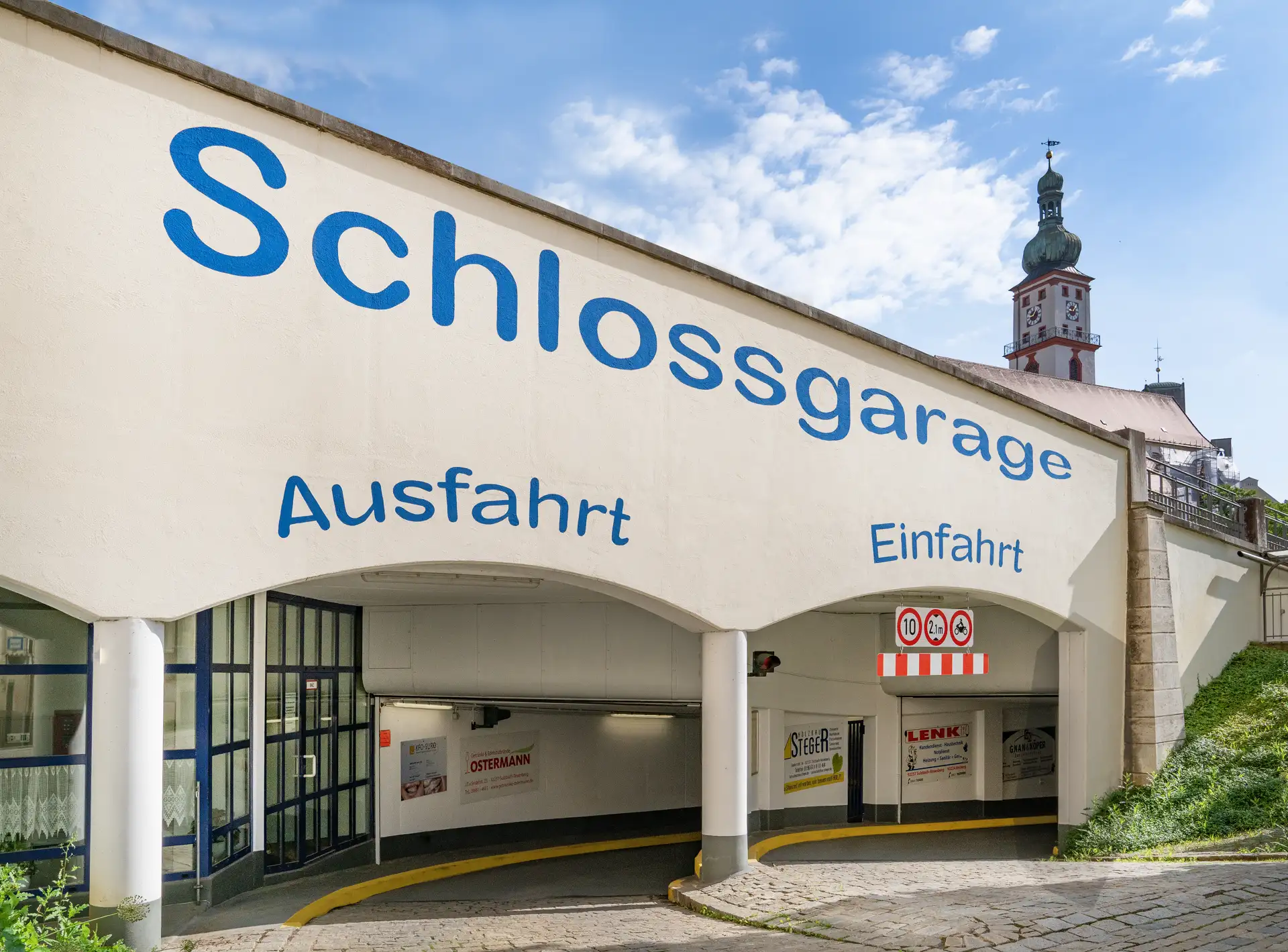 Die Schlossgarage in Sulzbach-Rosenberg ist eine moderne und zentrale Parkmöglichkeit in der Altstadt. Sie bietet insgesamt 220 Stellplätze auf zwei Ebenen. Stellplätze können auch dauerhaft gemietet werden.